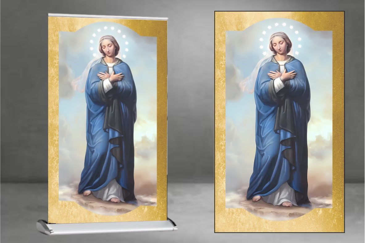 Fondale avvolgibile roll up per camere ardenti raffigurante Madonna dell’Immacolata.